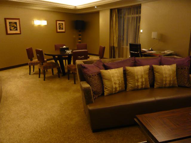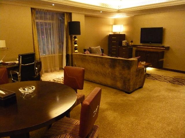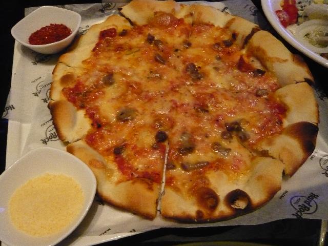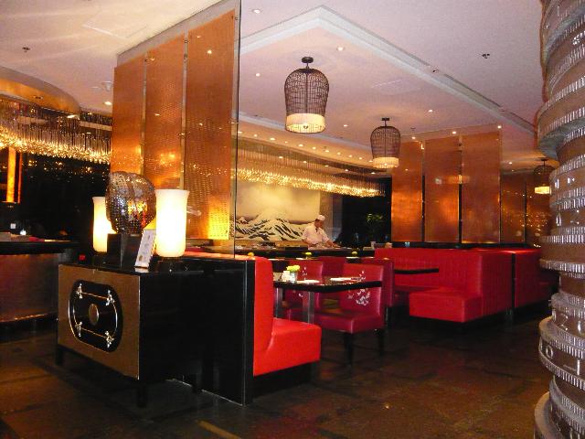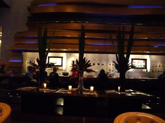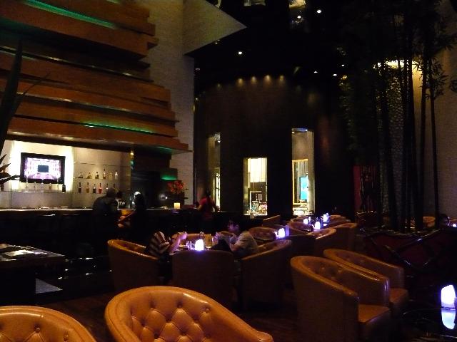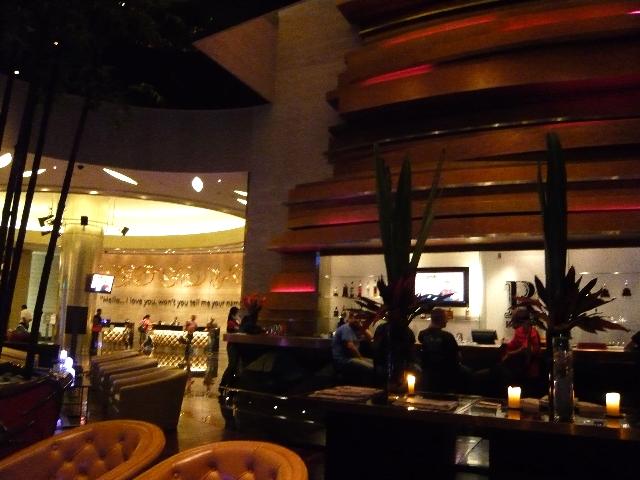 ハードロック・ホテルのフロント横にある「Rバー」。高級なソファにゆったり腰を沈ませるととっても落ち着きます。すぐそばでDJがしゃべり続け、テンポの良い音楽が流れ続けています。今晩はここで洋風ディナーです。(⌒_⌒)