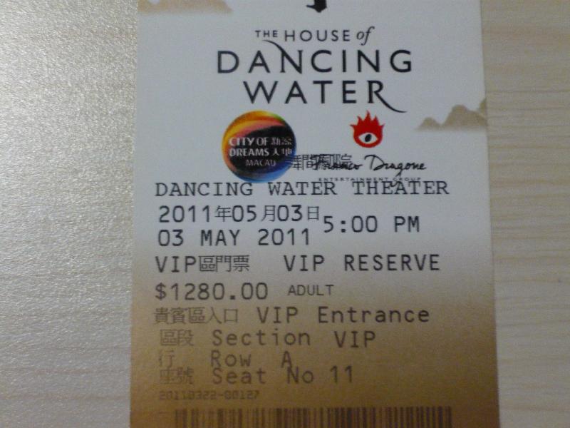 チケットは公式サイトからでも、現地チケット売り場で購入しても、良い席から順に振り出される仕組みです。くるくるの場合は、3月のマカオ訪問の際にCity of Dreams の現地チケット売り場に立ち寄り、5月3日のチケットを購入しました。
