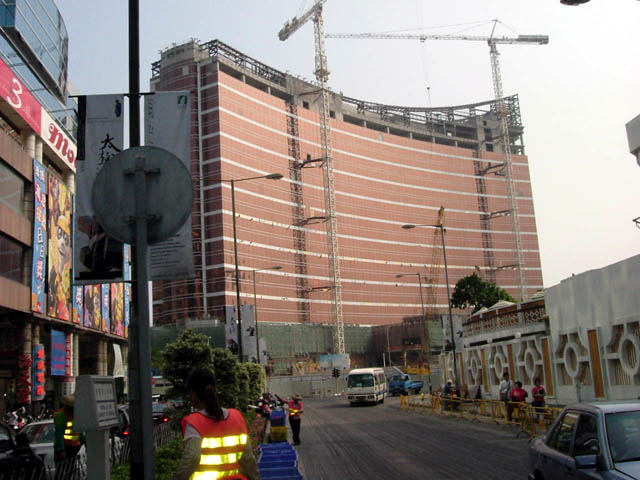 仕事を早めに切り上げ、夕方5時にマカオ入りし宿泊先、マカオマンダリンホテルにチェックイン、妻に頼まれていた買い物をしにタクシーへと乗り込みました。しばし走るとベガスで見た事あるような建物が…建設中のWYNNでした。今年3月、オープン直前のWYNNをベガスで見てきましたが、規模は小さそうですが同じような建物を作っていました。