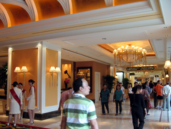 24階建ての外見はラスベガスと同じですが中はぜんぜん違います。色調は同じベージュを基調としていますが高級感はあるもののお客が99%中国系やっぱりマカオです。