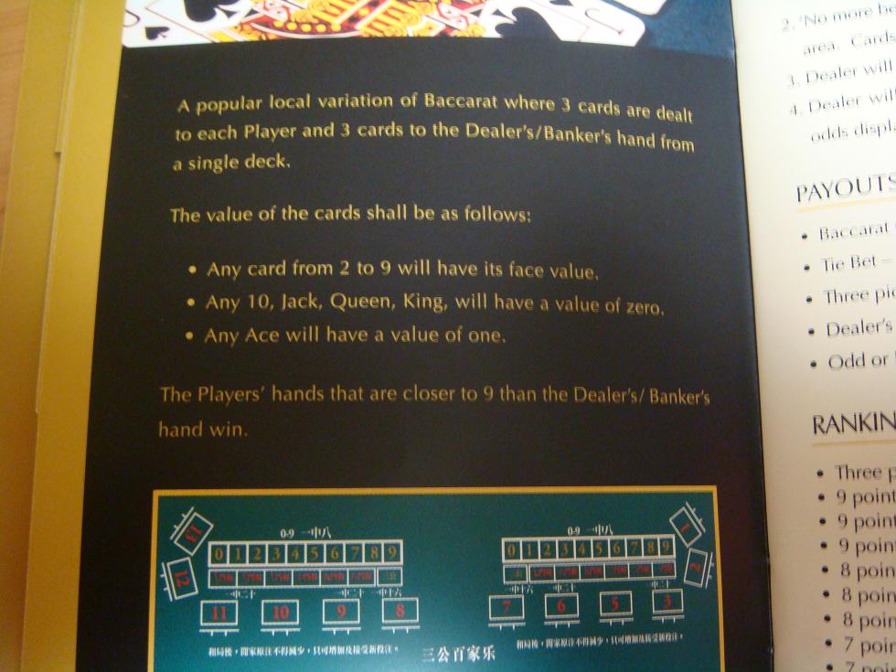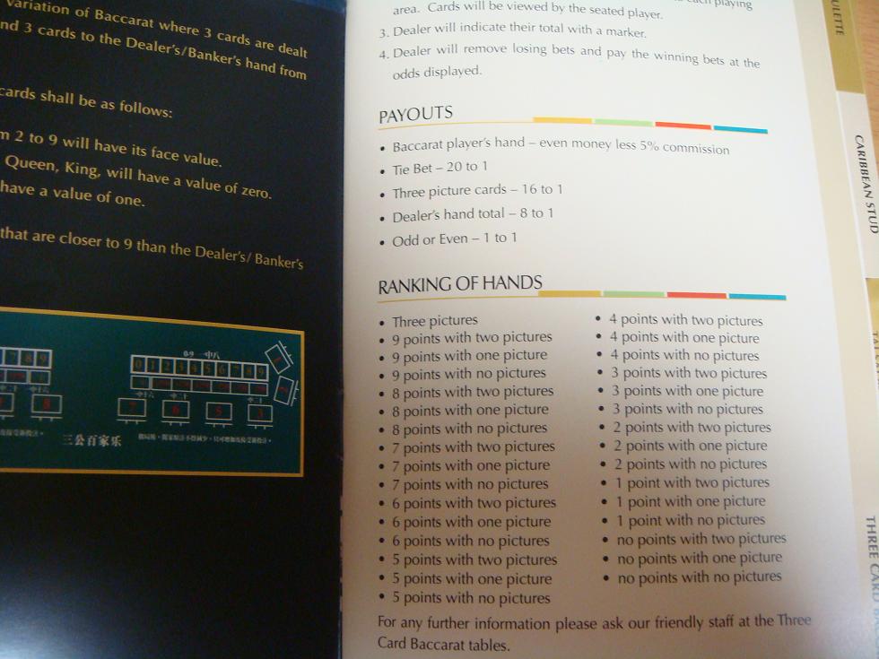 【3カード・バカラ】の、ルール・ブックを、写真で載せますので、参照下さい。