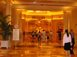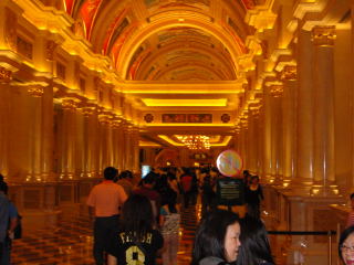 へ?、何で?と思ったら、このベネチアン、今までのマカオのカジノと違って金属探知器によるセキュリティーチェックがない。もちろんセキュリティーの人間はちゃんと配置されて未成年者等の入るべきでない人間のチェックはしているが、手荷物検査は一切していなかった。つまりべガスのカジノと同じく手荷物持ち込みOKです。その後、カジノ内でトランクケースを引っ張って歩いている人も見かけたくらいです。