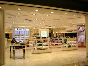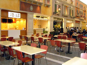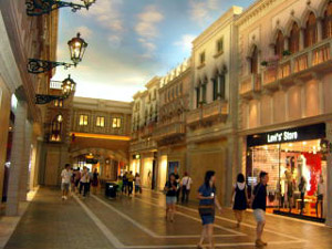カジノエリアの上の階、2階がショッピングエリアとフードコードのエリアとなっている。この階の天井には空の絵がかかれていて天井が高く感じた。まるでベガスのパリスカジノとそっくりでした。ショッピングエリアも非常に広く、数え切れないほどの専門店がならんでいます。ショッピングエリアには銀行も入っています。あと2階にはフードコードもあり、軽食も食べれます。2階へはホテルエリア、カジノエリア両方から登れるようになっています。