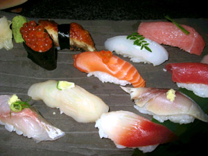 まずは鉄板焼きでお寿司とステーキをいただきました。