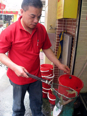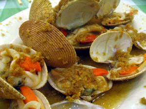 お店の入り口に活きてる蟹・海老・貝・魚が用意されていてすべてがはかり売りです。