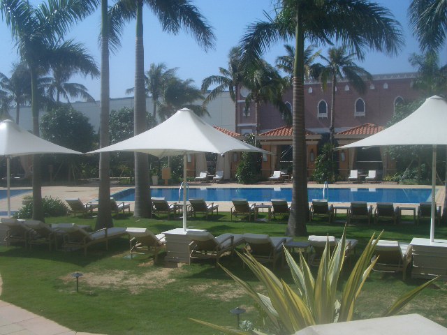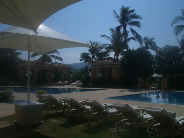 野外のプールがとっても素敵で、まず目にしたのが3つのプール、そのうちの2つは子供用でもうひとつは温水プール。ちょっと下に下りると、さらに大きなプールがありました。