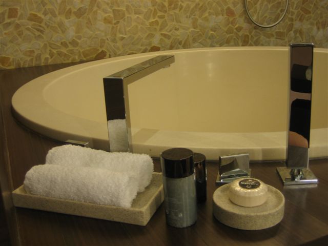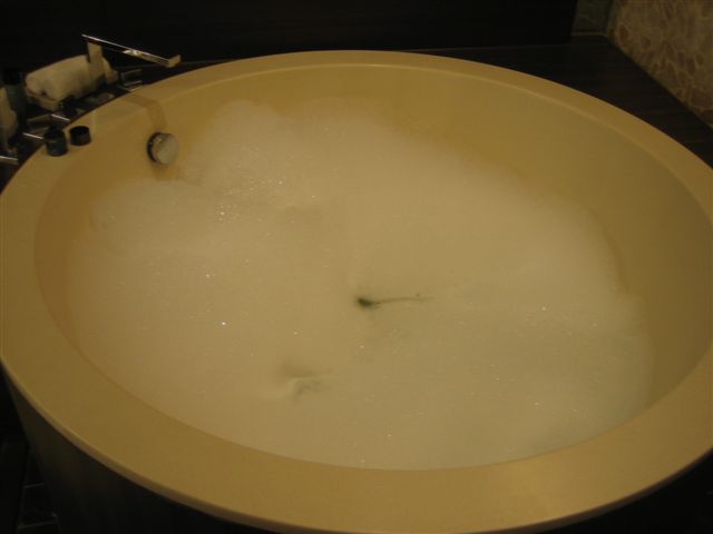 私はやっぱり日本人なので、冷蔵庫のペリエは苦手なので備え付けのホテルのお水で水分補給しました。ラブラブならばカップルで入れるぐらいの大きなバスタブでした。