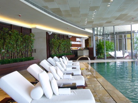 ほとんど貸しきり状態でした。フレッシュジュースを飲みながら、アウトサイドのサンデッキで日光浴出来ました。
