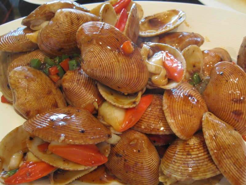 トシローさんはアサリの豆鼓炒めをご希望ですが、アサリが無かったので北寄貝の小さいみたいな貝で作っていただきました。