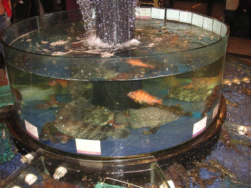 水槽コーナーへ入ると、水槽や発泡スチロール容器に水を入れた”たらい”にいろいろな魚、貝、エビなどがぴちぴちしています。おいしそ~~~(*^o^*) これを見るだけで気分がアゲアゲ♪です。