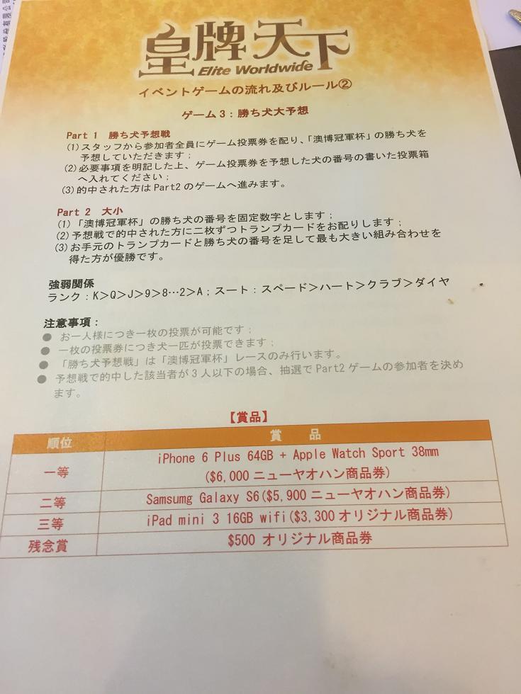 メインレースの、SJM冠のレースで優勝の犬を当てるゲームで見事当てたものの、その後の抽選で残念ながらIphone6やIwatchは当りませんでした・・・残念(><)