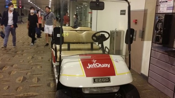 VIPのイミグレイション用のカートが、搭乗出口に待っています。