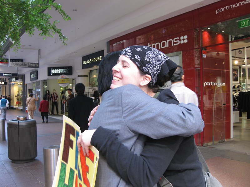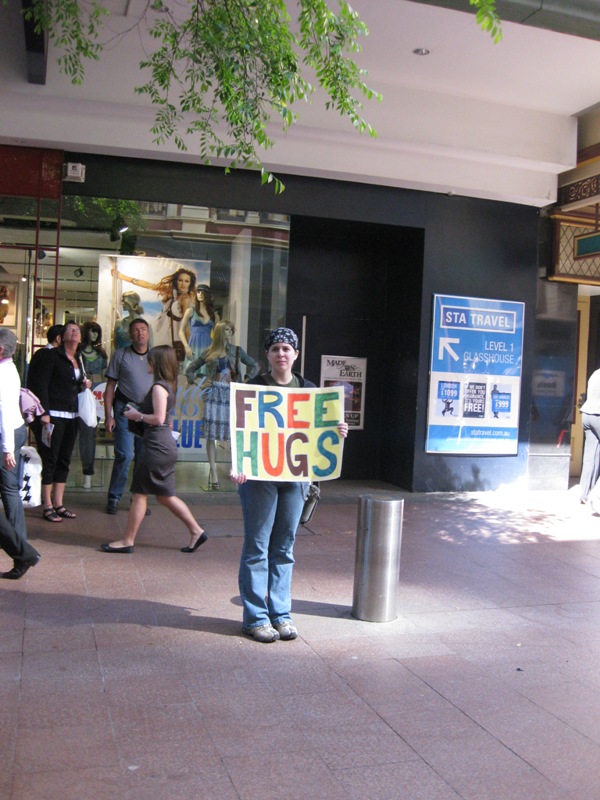 次の目的地はオペラハウスです。フリーハグのお姉さんを見つけました。