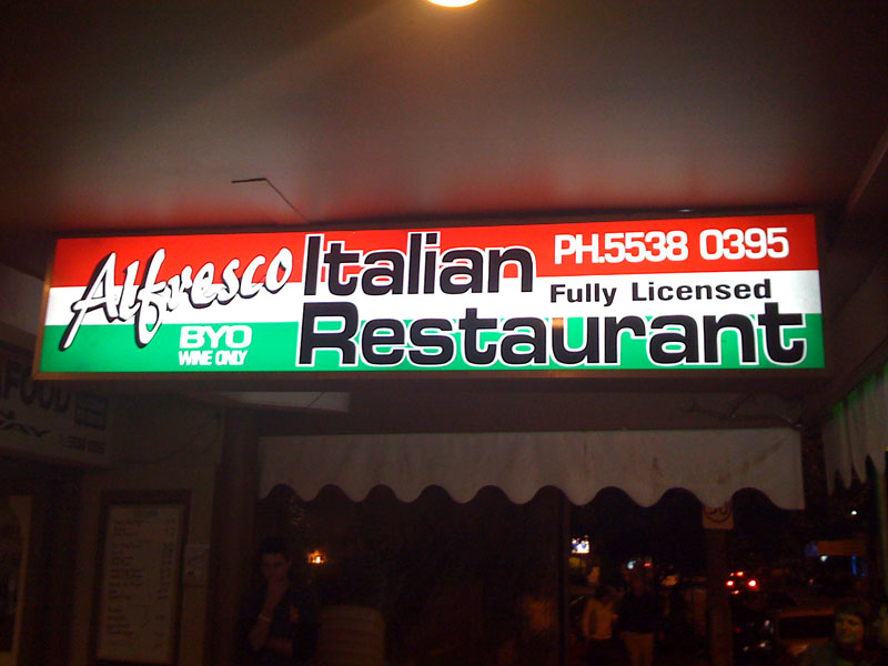 夕食はイタリアンalfrescoへ。ここは僕が知る限りゴールドコーストNO1イタリアン。スパゲッティ、ピザの美味しい所です。