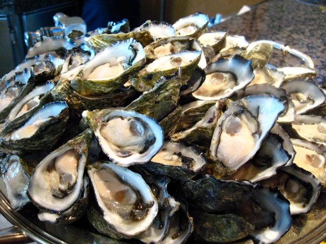オーダーはもちろん、牡蠣だ。レストランのスタッフにはシーフード・プラッターなどを勧められるが、これをあっさり断り、「牡蠣、牡蠣だけ持って来てください」とシンプルにオーダーする。ここまで来ておいて、牡蠣以外は胃袋に入れたくない(笑)。ひとり1ダース分用意された牡蠣は、参加者の度肝を抜いた。まさに圧巻であった。