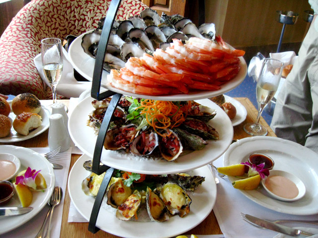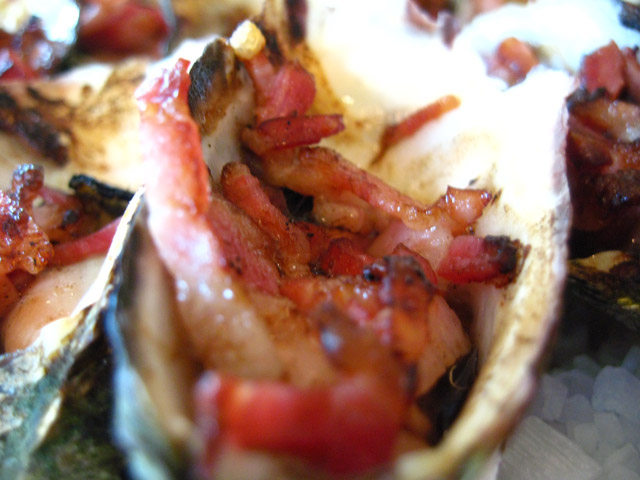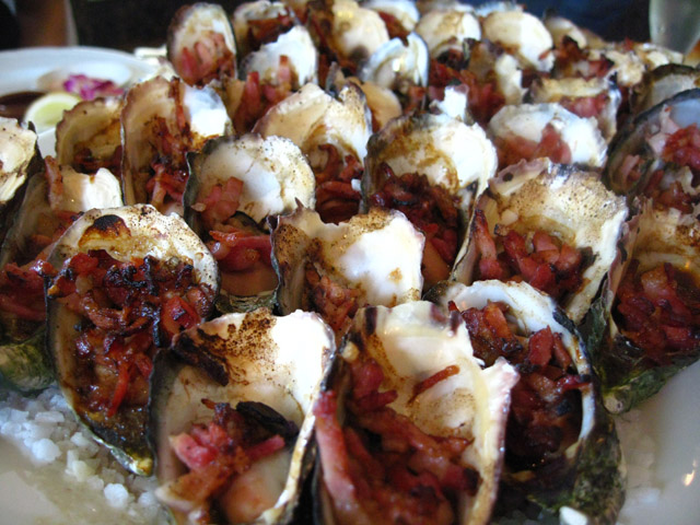 ベーコンとともにオーブンで焼いたキルパトリックは、殻の中のスープが上等なオイスターソースになっていて、生牡蠣とはまた違った美味しさ。名前は分からないが、チーズをかけてオーブンで焼いたグラタン風のものも素晴らしい美味しさで、かなり人気だったようだ。