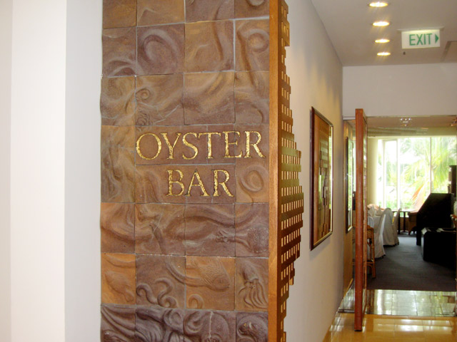 22名の方が僕の個人的な希望につき合ってくださった『生牡蠣食べ尽くしツアー』。目指すは、シェラトン・ミラージュ・ゴールドコースト内のレストラン「オイスターバー」だ。天気はあいにく曇りがちだったが、マリーナ・ミラージュ周辺の景色はいつも通りにリゾートしている。