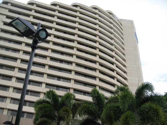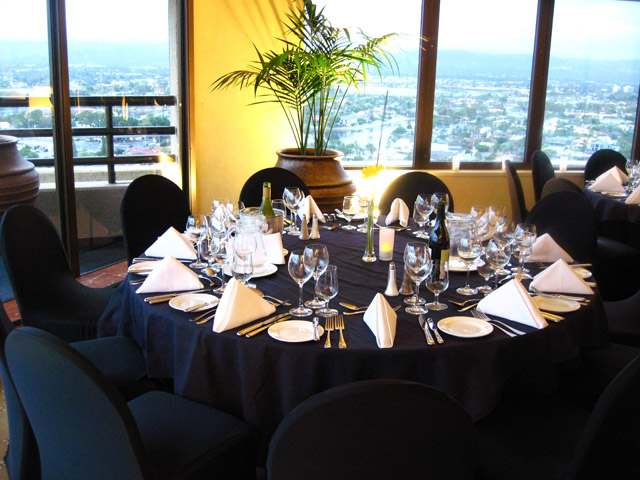 当初、プールサイドで予定されていたウェルカム・パーティだったが、今にも雨が降りそうな天候のため急遽最上階のペントハウスへ会場が変更された。通常は入ることさえ許されないジュピターズのペントハウスだから、この変更はむしろ大歓迎だ。昨年のオフ会とちょうど反対側(南向き)で、違った景観を楽しむことができた。