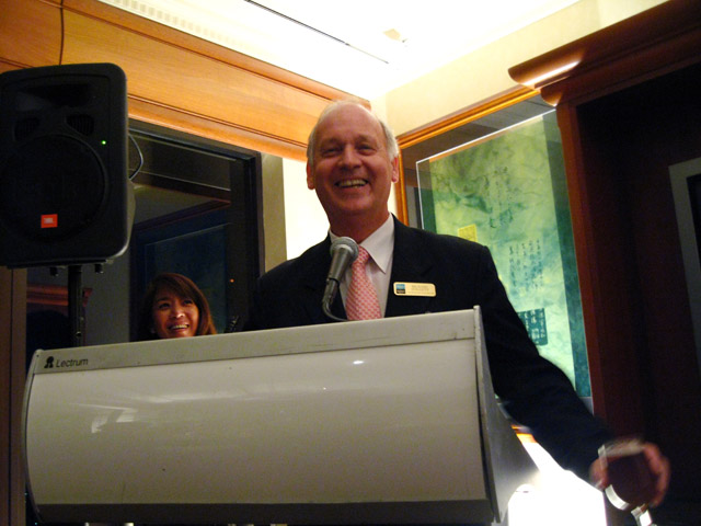オフ会の幹事役の業務の中で一番苦手なことがスピーチだ。これだけは何度やっても慣れることが無い。上手くまとまったかどうか分からないうちになんとか終えて、そのバトンをカジノ・マネージャー、リゾカジマスター、インターナショナル・マーケティング・マネージャー、日本マーケティング・マネージャーへとつなぐ。しかし、バフェの用意がまだ完了していないとのことで、急遽キャロさんにもスピーチを振ってみる(笑)。キャロさん、突然で申し訳ない。