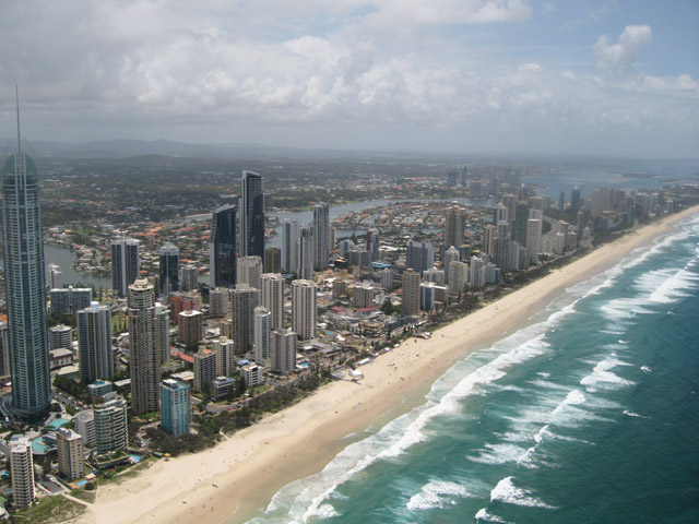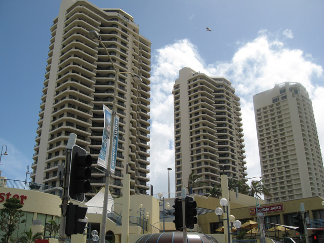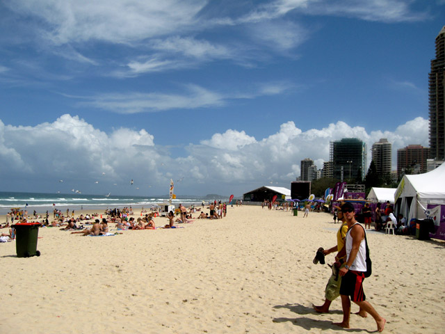 この時期のゴールドコーストは、日差しが出るとそれなりに暑い。ビーチにも行ってみるが、砂浜からの照り返しも強くて長くはいられないほど。でもやはり、ビーチリゾートはこうでなくちゃその雰囲気が味わえない。