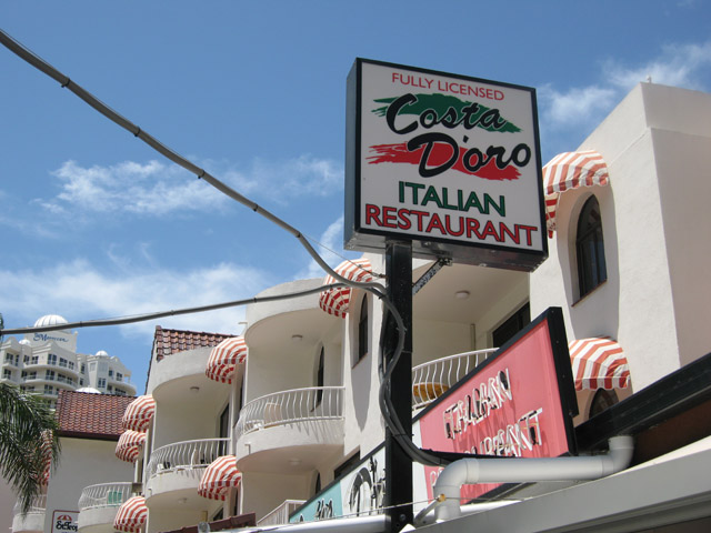 さて、サーファーズには15年前から通っているイタリアン・レストランがある。オーキッド・アヴェニューのなかほどにある「Costa D’oro」というレストランだ。ここのアマトリチャーナとカルボナーラの食べ合わせが飽きさせない絶妙なバランスで、ゴールドコーストに来ると必ず立ち寄っている。ということで、今回もここでみなさんとランチ。「美味しい」と言ってくれるみなさんの笑顔が、僕にとっては最高の調味料だ。美味しい料理がさらに美味しくなる。OZビールで乾杯したが、僕はジュピターズに帰ってからプレイ予定なので、ここではほどほどにしておいた。