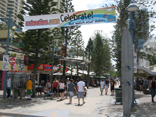 ランチを兼ねてサーファーズ・パラダイスの散策をしてみる。ちょうどこの週末は「SCHOOLIES WEEK」に重なっていて、サーファーズの街はいつもより賑やかな印象だ。