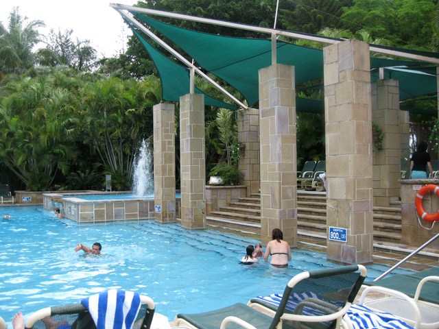 ジャグジーが空いたので、5人で仲良くくつろいでみた。見上げれば真っ青な空が一面に広がっている。真夏の露天風呂のような心地よさだ。リゾカジストが集まれば、自然発生的にカジノ談義が始まる。結局、身体がふやけるほどの時間をジャグジーで過ごすことになった(笑)。