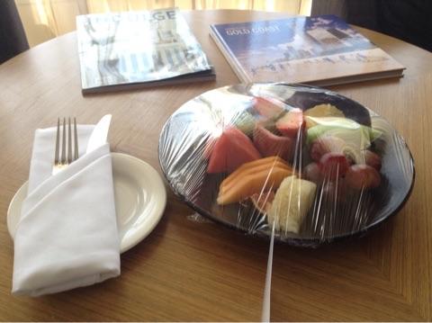散歩の後は、「THE CLUB」で用意されているパンやフルーツを朝ごはんにいただいて勝負開始です。