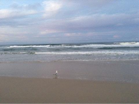 ちょっと歩くとすぐにブロードビーチでしたが、最高気温20度なので泳いでる人はいませんねー。