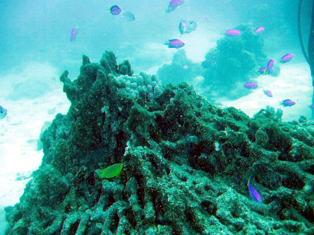 サイクロン・モニカの影響で水が濁り、透視度10m程度。