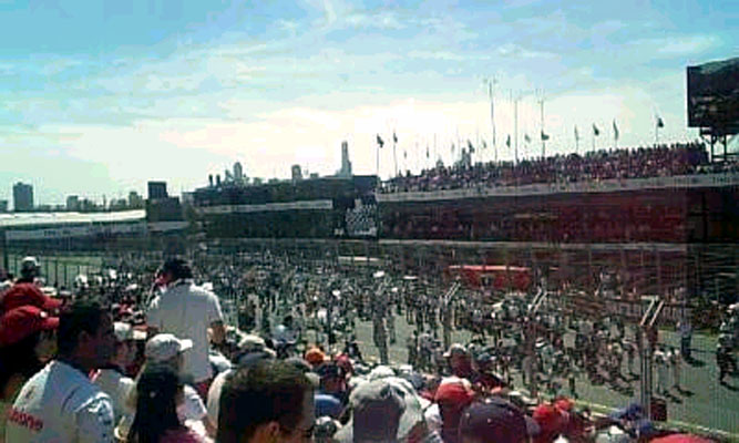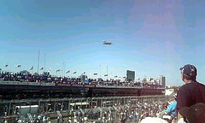 ジャンボジェット(カンタス航空)は低空飛行でスタンド前まで飛んでくる