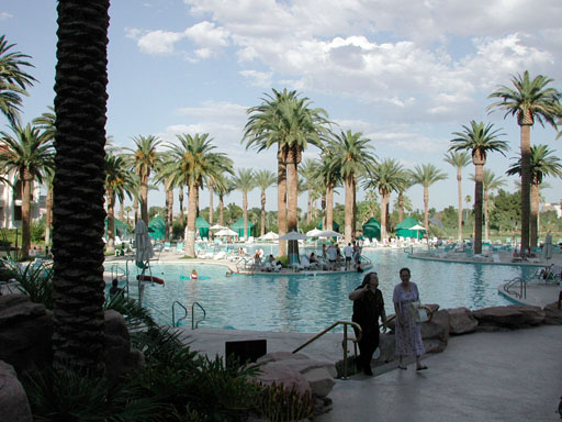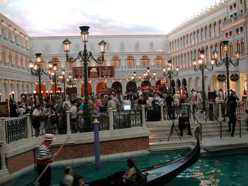 この9月に一旦閉鎖される(このへんのスティーブウィン氏による買収話は後ほど)最後の勇姿を見納め。それにしてもストリップの喧騒が嘘のようなホテル内は、好き嫌いがはっきりするところ。もう十年ほどすれば、こんなところに滞在するのもいいかな・・・・・でも今は絶対無理。1時間とじっとしてられないでしょう。(ホテル裏のプールからゴルフコースへの空間は素晴らしいの一言ですが)続いてベネチアンのグランドキャナルショップへ。