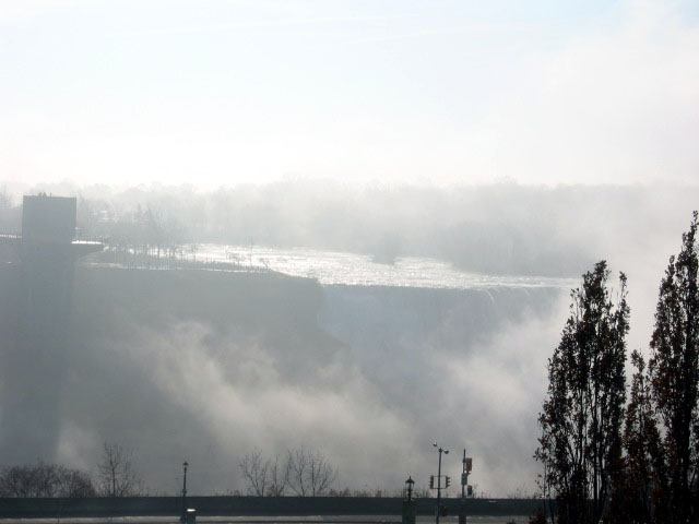 カナダ側にも滝横の橋を歩いて行ける距離、国境をまたいでの