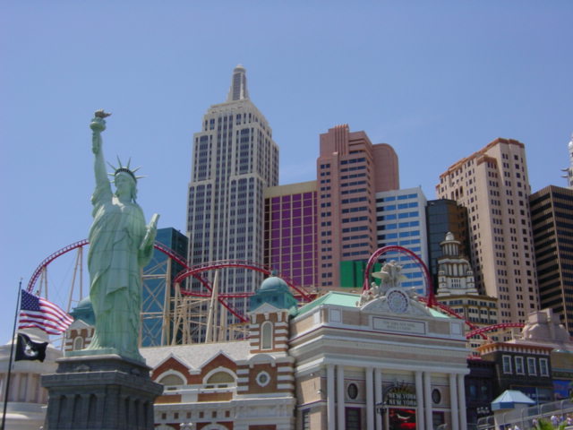 ●ニューヨーク・ニューヨーク・・・カジノフロア&フードコートはダウンタウンの街並を再現されていていい感じ。マンホールからは湯気も上がっています。(芸が細かい)ローラーコースター 「マンハッタンエクスプレス」には“シングルジャーニー”で乗れば待ち時間を大幅に節約できますよ。エクスカリバーから歩道橋でわたったフロアにあるマジックショップでは、只でショーを楽しませてくれます。