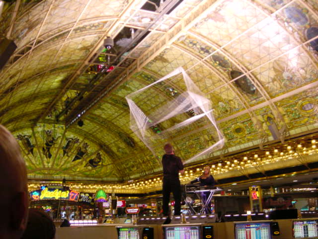 ●トロピカーナ・・・スロットマシンの上で繰り広げられる空中サーカス \"Air Play\"が無料で楽しめる。シルクドソレイユのショーに行けなかった人は見に行ってください。また、歩道橋を降りた玄関前に大きなスロットマシン(無料)があって、当たればスロットマシンで遊べる券?をくれるようです。(私はハズレでした)。