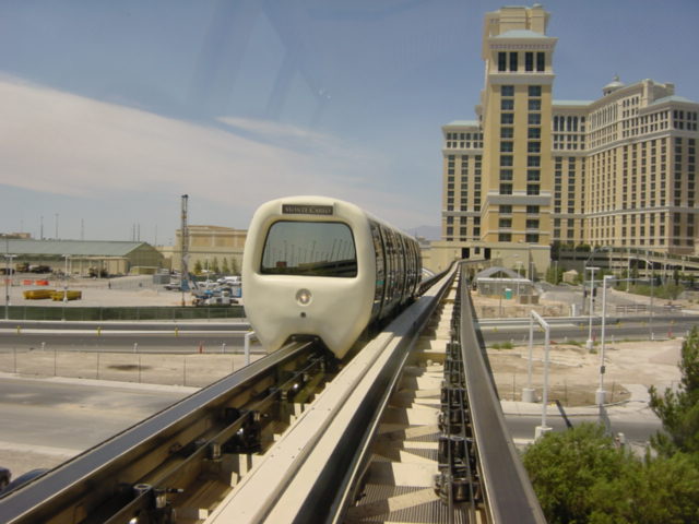 さてここからは、NYNYのブルックリンブリッジを渡って、モンテカルロに向かう。モンテカルロは、ベガスにおいては特徴に乏しいホテルだけど、「ベラージオ」へのモノレールに乗るために一応見学ってな感じです。モンテカルロの正面エントランスをまっすぐ進んで、ホテルのフロントの手前を右側に進んでいくとモノレール乗り場です。