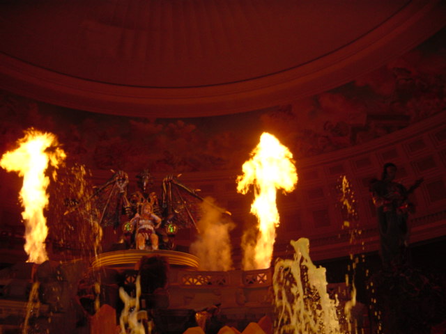 ●フォーラムショップス・・・さすが一番人気と言われるだけあってすごいショッピングアーケード。無料の火と水のショーは開始30分前くらいからぼちぼち場所をキープする人が集まり出す。でも5分前くらいに行って人の間から見れば十分のショーです。だって、ロボットが演じるので雰囲気がわかれば十分。「しょせんロボットの芝居なんざぁ。。。」と市民劇団の役者でもあるカジ郎が言っております。はい。