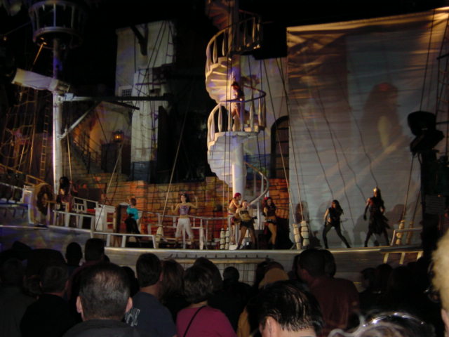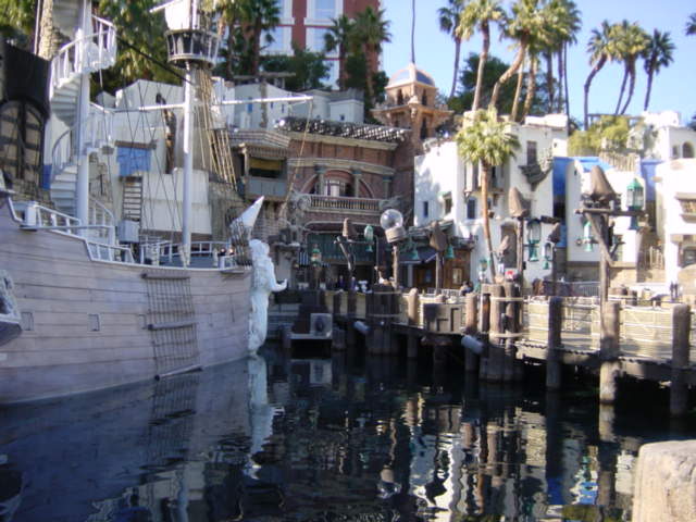 ●TI・・・ここのショーは、お見逃しなく。ホテル前にはショーの時間が書かれているので確認の上せめて20分くらい前に行って場所を確保して見てほしい。場所を確保してショーを見るここが、一番ディズニーランド的アトラクションです。橋のどちら側で見るか迷うところですが、やっぱりホテルに向かって左側かな。
