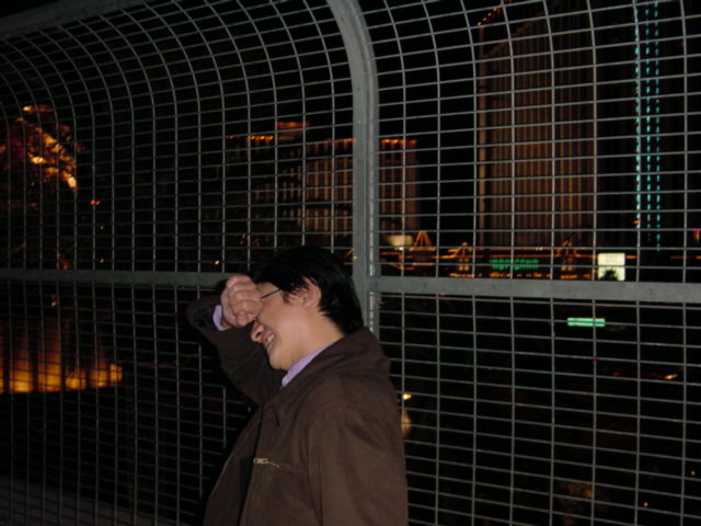 ●食後は、Bellagio定番の噴水ショー。寒いのをガマンしてストリップ側から観る。ベガス常連さんばかりなのに、意外と正面から噴水を見た人は少ないらしい。皆さん普段はカジノにこもり切りという事なのか、それとも、ベガスにはそれほど観るべきものが多いということなのか。 ※実はボク、帰国後も噴水ショーの音楽(コーラスラインのテーマ)が頭の中で鳴り響いているのです。既に禁断症状が出ているのでしょうか?