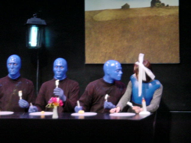 ●このブルーマンショーでハプニングが! ショーの中で、ブルーマン自らが観客の一人を選び出し舞台に上げる演出があって、なんと何百人もの観客の中からkappa妻の友人が選ばれた。彼女はブルーマンの期待に見事に答え、大胆なアドリブを交えながら15分前後もブルーマンとからみ、拍手喝さいを浴びた。考えてもみてください。本場ベガスの一線級のショーに日本人が出演なんて、そうある話ではありません。はじめてのショーでいきなり選ばれるなんて、 超A級の引きの強さです。(ただし、ブルーマンが日本人を選んだと思っているかどうかは疑問。彼女はチャイニーズから「あなた北京の人でしょ」と言われる位なのでチャイニーズアメリカンだと思われたのかも…)しかも、これが単なる幸運だけではないことを、後々私たちは思い知らされたのでした。ともあれ、この時からkappa妻友人の正式ハンドルネームは『ブルーレディ』に決定したのです。