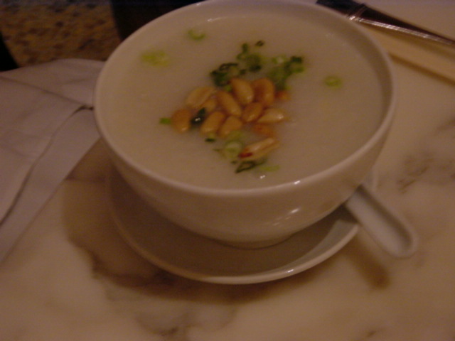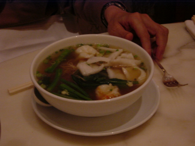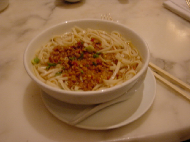 ●21:30 「江場さんを囲む会vol.2」(第3回食事会)。ここで新たに速球王さん、ふうてんのマサさんが合流。昨日は欠席されたレフトハンドさんも復活。「O」からの流れで、Bellagio内のヌードルズへ向かう。ここは前回のOFF会でも食事会を行ったリゾカジお気に入りの店。席も、前回とまったく同じ円卓だった。8人がけ程度のテーブルに13人が座ったので、さすがにスペース的には狭かったが、全員の顔を見ながらゆっくりお話できた。 まとまった人数で行くなら、ここの円卓はオススメかも。メニューは、点心や麺類、飯類などカジュアルなチャイニーズで、本場っぽさも残しながら、あっさりしていて食べやすい。個人的には、担々麺と海鮮炒飯(上海風炒飯やったかな?)がオススメ。 寝不足で胃腸の弱っている方には、お粥もある。食後には、マンゴープリンを忘れずに。JUMBOさんは、このマンゴープリンにオレンジジュースをかけるのが、お好き。 結構行けるのです。 (^O^)