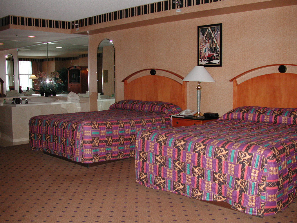 最終日は短時間の勝負を決めて、その後はお遊びモードに入ろうともくろんでおりました。アラチャンさんと座ったBJでまたもいきなり爆発。今回のベガスオフでは、アラチャンさんと一緒に座るとお互い負け無し、勝率10割でした。4日目のプレイに入る前の段階で、マルキスルーム(ジャグジー付)4泊コンプ&部屋付けの食事コンプを提示され、その後の部屋付けの食事は$50までコンプと言われました。