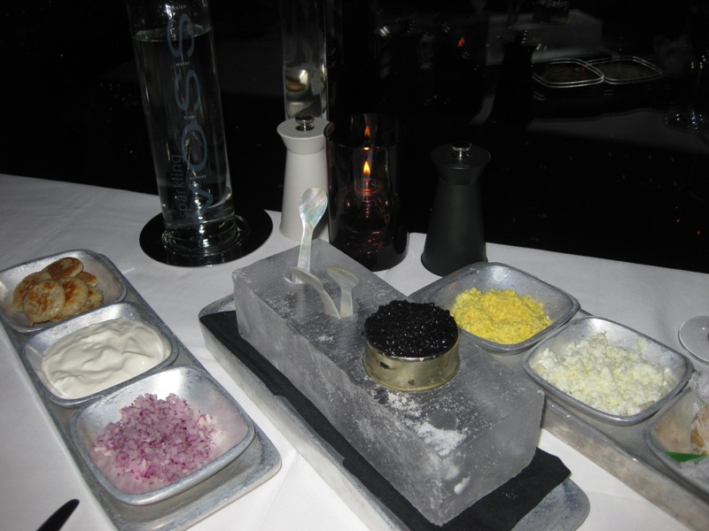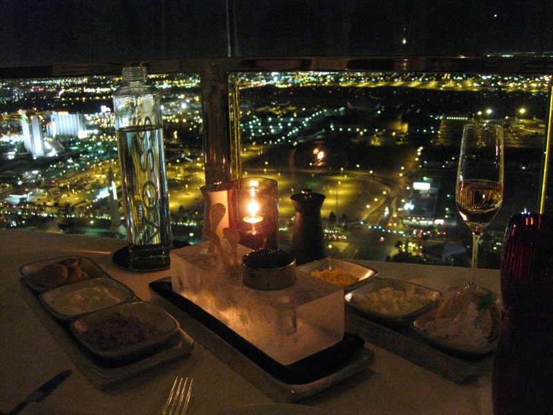 さて、マンダレイベイホテルの新館の「THE HOTEL」の64階に素敵な夜景が見えるレストランがあります。それが「MIX」です。ここでは到着を祝って、シャンパンにキャビアで乾杯です。