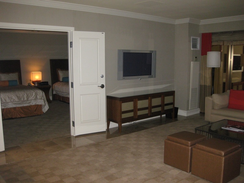 つまり、レストランの場所も、ラスベガス以外の都市のホテルでは、お洒落なレストランは最上階もしくはそれに近い高層階にあるのが普通ですが、ラスベガスでは最上階にはレストランをつくりません。ホテルの最上階はいつも決まって、ハイローラー向けのゴージャスなスイートルームです。