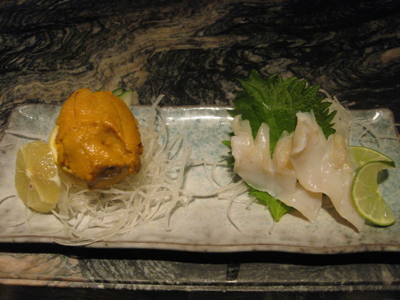 サービスで、雲丹と中トロのおつまみをくれました。