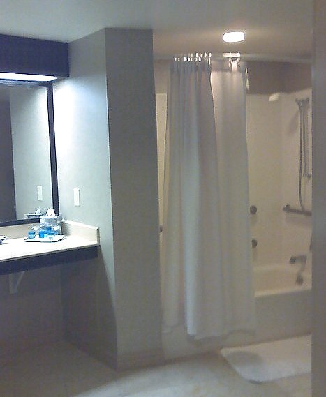 あと、なぜかバス・ルームが2つに別れていて、シャワー・ルームとタブがそれぞれに1つずつとなっていましたが、部屋とベッドが1つずつしかないのに、2つのバスルームは不要という感じがしました(・_・;)。それより、1つの広いバスルームにタブとシャワー・ルームを一緒にして欲しかった……。