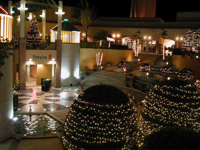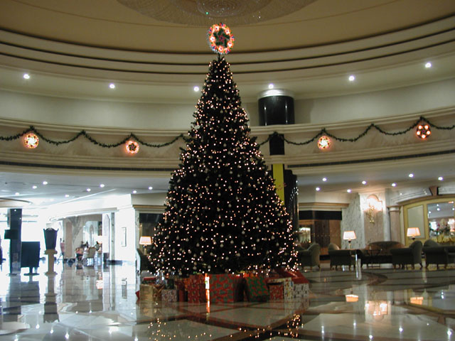 19:30からゴルフ表彰式・クリスマスパーテイーです。コンペ参加者以外にはミラージュさんとkonnkonさん奥様が参加されました。この9名で1テーブル独占させていただきました。料理はローストビーフからカニ、カキ、えびすし、活け造り、てんぷらなどかなり豪華です。ベラージオのデイナーバフェよりいいかも。ドリンクもワイン、スコッチ、ビールなど用意されています。 約1時間の食事タイムのあと、いよいよ表彰式です。ホテルの支配人、テニアン市長、などのあいさつのあといよいよゴルフ結果発表です。まずニアピン賞にはわれらのキャロさんの名前が呼ばれます。満面の笑みのキャロさん。ママも大喜び。支配人とガッチリ握手し記念撮影。景品は100ドルのカジノチップ交換券。我々には1番いい景品です。つづいてブービー賞はテニアン大好きさんです。またまた盛り上がる我がテーブル。スコアーは本人の名誉のため隠しておきます。キャロさんと同じく景品は100ドルのカジノチップ交換券でした。次のゴルフコンペは3/10(日)だそう。早速みんな日程をチェックしました。