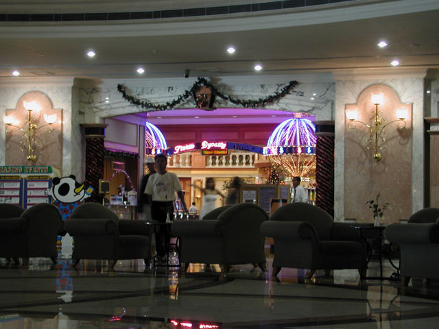まずGAKUさんがすぐにチップがなくなり、ドロップアウト。続いてわたしも。ユミリンはと2000ドルが倍以上に成り、途中まで掲示板に名前が載っていたのですが、惜しくも予選落ち。結局トーナメントにはのべ50人が参加したようです。優勝は昨日遅くまでずーと負けても負けてもBJをプレイしていた派手な日本人のオバチャンでした。優勝賞金の700ドルを手にし大喜びでした。