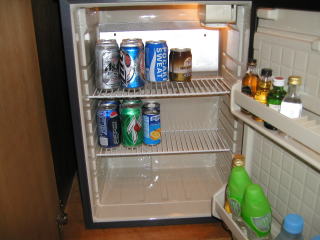 冷蔵庫の中。ミニバー。一つも飲みませんでした。1Fのコンビニで買ったものを入れて飲みました(セコイ)