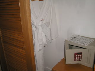 クローゼットの中。セーフティボックスとバスローブが。バスローブあるくせにスリッパはない。まぁいらないけど